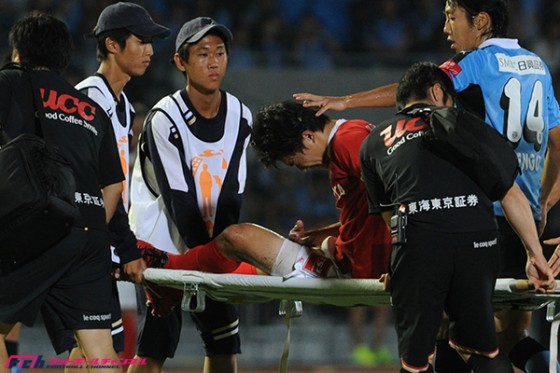 川崎F戦で負傷し担架で運ばれる永井謙佑【写真:Getty Images】