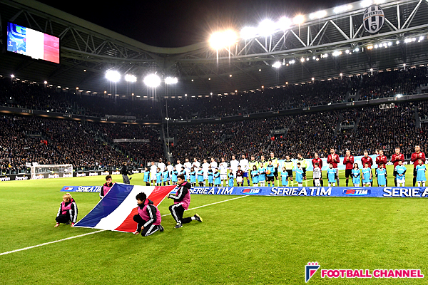 ユベントスvsミランは、パリ同時多発テロで多大な痛みに瀕したフランスへのオマージュで始まった。整列する両イレブンの前には、フランス国旗が掲げられる。そして試合前に流されるのは、今季から採用されたセリエA公式アンセム「オ・ジェネローザ(おお気高き者よ)」ではなく、フランス国歌「ラ・マルセイエーズ」。