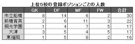 前回大会の決勝で激闘を繰り広げた星稜と前橋育英にも注目してみた。星稜は本田圭佑の母校としても有名な石川県の絶対王者だが、今回の調査では5人と平均的な結果に。一方、今年の群馬県予選の決勝で壮絶なPK戦を制した前橋育英は、22人で2番目に多かった。