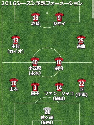 リーグ優勝するだけの力はある。加えて今季はアジアチャンピオンズリーグに出場しないため、国内での戦いに集中できる。若い選手が多いチームではあるが、柴崎らプラチナ世代は今年で24歳と決して若い部類ではない。昨年同様、チームを牽引する働きが必須となる。