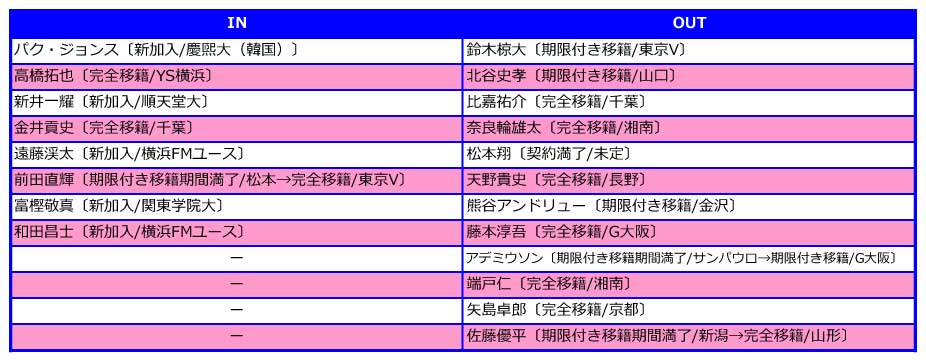 2016シーズン 戦力入れ替え