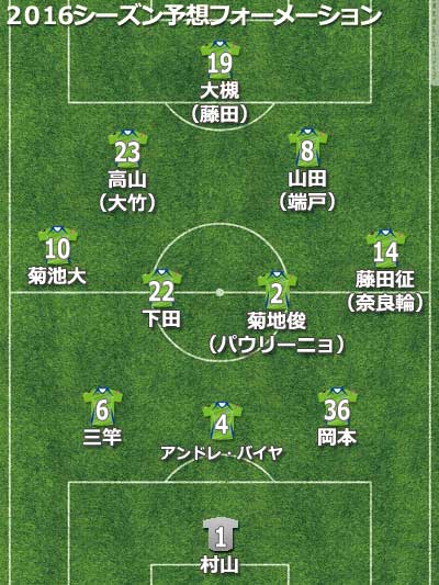 GKは松本山雅FCから村山智彦を、CBに浦和レッズから岡本拓也、そしてボランチにはヴァンフォーレ甲府から下田北斗をそれぞれ補強。移籍していった主力の穴埋めが期待される。いずれも核となるポジションのため、新加入の3人は早くチームにフィットしなければならない。