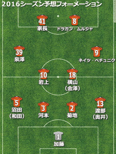 各ポジションに即戦力を補強し、選手層に厚みを持たせることに成功。昨季J2優勝を果たした主力は揃って残留しチーム作りも順調に進んでいる。惜しむらくはストライカー不足か。エース不在が得点力不足に直結してしまう可能性は高い。