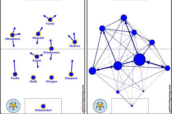 クラウディオ・ラニエリはレスターの監督に就任して以来、自身が導入した4-4-2フォーメーションにこだわり続けている。4-4-2は、通常著しい欠陥をもった英国伝統のシステムである。特にポゼッションに重点を置きたいチームが採用する場合はそれが顕著に現れる。ところがレスターの場合は非常にうまく機能している。