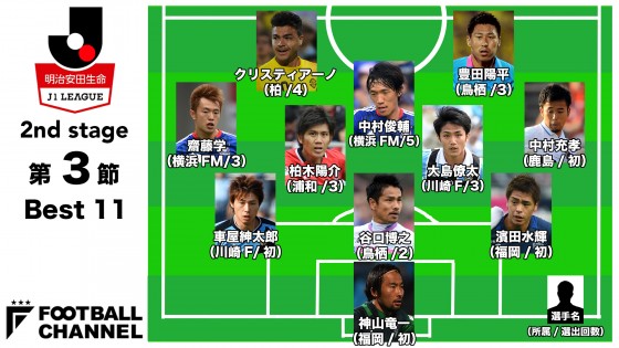 J1 2ndステージ第3節で活躍した選手は誰だったのでしょうか? フットボールチャンネル編集部が選ぶベストイレブンはこちら。