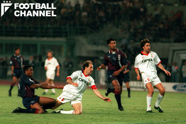 1990年代のアヤックスはルイス・ファン・ハール監督のもと、豪華メンバーを擁するポゼッションサッカーで一時代を築き欧州王者となった。写真は1995年、ACミランのバレージを打ち破り決勝ゴールを挙げる瞬間のクライファート【写真:Getty Images】