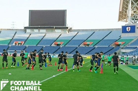 17時頃から開始された練習では、ピッチに選手らが登場するとまず全員を集めてのミーティングが行われた。約4分後に終了し、ランニングとダッシュ。選手らから笑顔はなく、重要な一戦に向け、緊張感は高まっている様子だった。