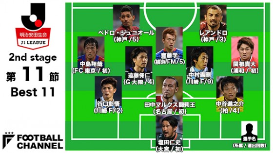 J1 2ndステージ第11節で活躍した選手は誰だったのでしょうか? フットボールチャンネル編集部が選ぶベストイレブンはこちら。