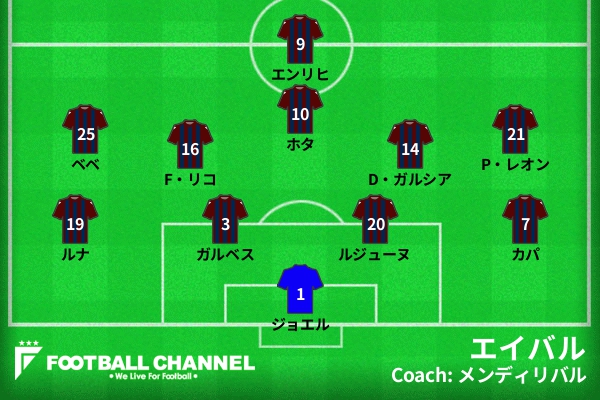 図はスペイン紙『ムンド・デポルティーボ』によるエイバルの予想スタメン。ここに乾の名前はなく、先発の可能性は低いかもしれない。