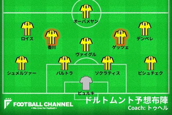 香川とゲッツェをインサイドハーフに並べる布陣は、プレシーズンの8月9日に行われたアスレティック・ビルバオ戦で既に試されている。ビルバオ戦でその布陣は機能しなかったが、プレシーズンということもあり、チームのコンディションはまだ整っていなかった。