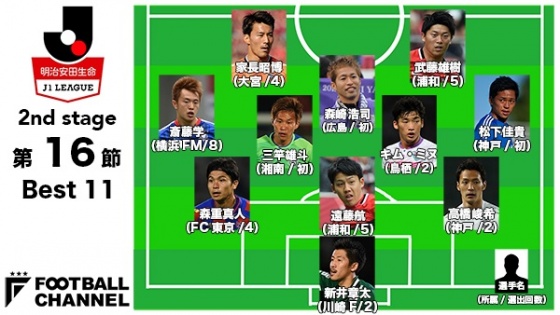 J1 2ndステージ第16節で活躍した選手は誰だったのでしょうか? フットボールチャンネル編集部が選ぶベストイレブンはこちら。