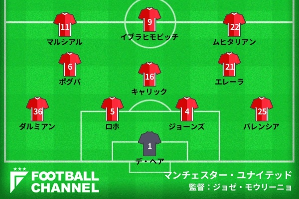 ユナイテッドはミッドウィークに行われたリーグカップ準決勝のハル戦を欠場したマルコス・ロホとズラタン・イブラヒモビッチが復帰。左ウイングにはアントニー・マルシアルが起用され、中盤はお馴染みとなったマイケル・キャリック、ポール・ポグバ、アンデル・エレーラの3人。現時点のベストメンバーを組んだ。