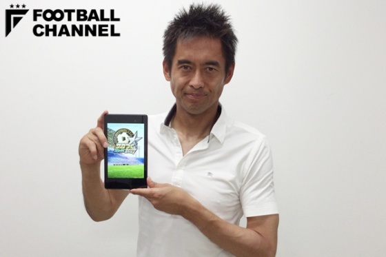 『サカつく』シリーズですっかりおなじみの川口能活。『サカつくシュート!2017』初登場を記念してインタビューとおためしプレイに臨んだ【写真:編集部】
