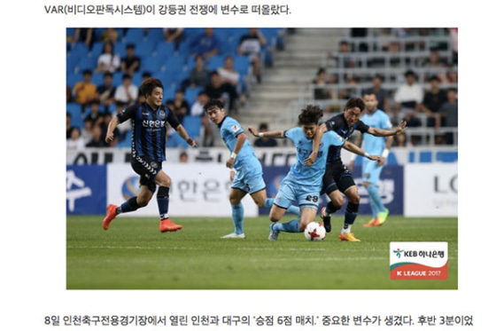 7月1日の試合から韓国でも実施されているVAR。同紙によると、試合開始して48分にキム・ドンソクが大邱FCのキム・ジンヒョクに向かって危険なタックルを行なったという。キム・ドンソクの両足はキム・ジンヒョクの足首とふくろはぎに当たったが、審判はファウルの笛を吹かずに試合は続行された。