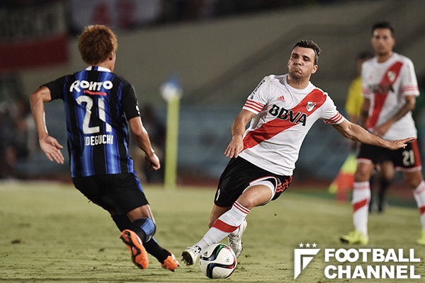 井手口にとってのターニングポイントは南米王者との邂逅である。2015年8月のスルガ銀行チャンピオンシップで、リーベル・プレート相手に井手口は「陽介はフィジカルが強いので」(長谷川監督)と右SBで先発した。開始早々の8分にPKを献上したのは若さ故のミスだったが、後半からは本職のボランチでアルゼンチン代表クラスがプレーする南米の雄相手に球際の強さを発揮。水を得た魚のように躍動感溢れるプレーを披露したのだ。