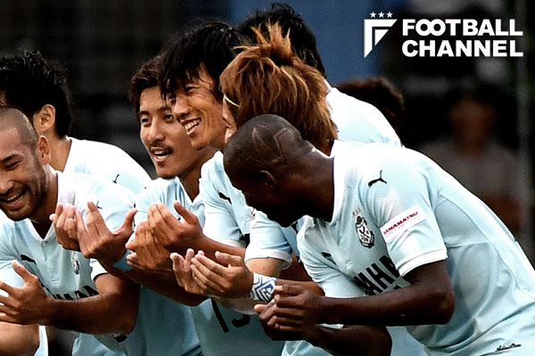 中村俊輔のゴールを祝うジュビロ磐田【写真:Getty Images for DAZN】