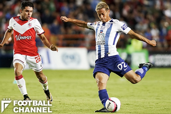 この日は守備の仕事をこなしながら、右ウィングからあまり中に流れず、中盤の3人にパスワークを任せてチャンスメークや高い位置でアクセントをつけることに徹していた。そこから周囲とうまく絡んでフィニッシュに持ち込み、2つの見事なゴールを記録したことで、「右ワイドの本田」としての存在感をディエゴ・アロンソ監督やチームメート、そしてパチューカのファンに印象づけたことは間違いない。