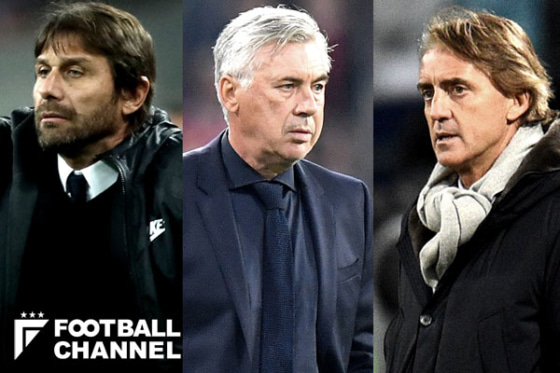 アントニオ・コンテ、カルロ・アンチェロッティ、ロベルト・マンチーニ【写真:Getty Images】