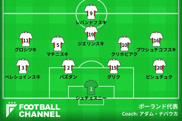 アダム・ナバウカ監督は11月のテストマッチで3バックを試したが、基本フォーメーションは4バックを軸とする[4-2-3-1]、[4-1-4-1]、[4-4-2]。レバンドフスキ、ヤクブ・ブワシュチコフスキ、ウカシュ・ピシュチェクといった“香川真司の新旧同僚”以外で注目選手を挙げるならば、SSCナポリ所属のピオトル・ジエリンスキだ。