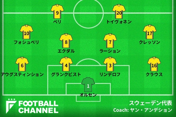 セントラルMFのエクダルとS・ラーションはどちらかというとハードワークが売りで、展開力に欠ける。プレーオフ第1戦で決勝ゴールを挙げたヨハンソンは広い視野と戦術眼を備えたタイプの選手だが、第2戦で右膝靭帯を断裂してしまったため、万全の状態で本大会に挑めるかどうか未知数だ。