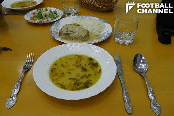 なんと選手たちと同じ食事を振る舞ってくれたのである。ロシアではその後も何度も同じようなスープを飲んだが、SKAハバロフスクの食堂でいただいたものが最も美味しかった。肉料理の味付けも独特だが風味豊かで食が進む。ごく一般的な家庭料理という雰囲気で、練習を終えてシャワーや着替えを済ませた選手たちも続々とやってきては美味しそうにたいらげて帰っていく。