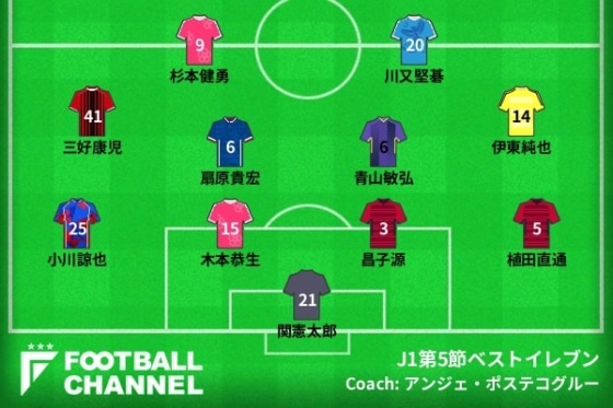 フットボールチャンネル編集部では、3月30日から4月1日にかけて行われた明治安田生命J1リーグ第5節のベストイレブンを選出した。