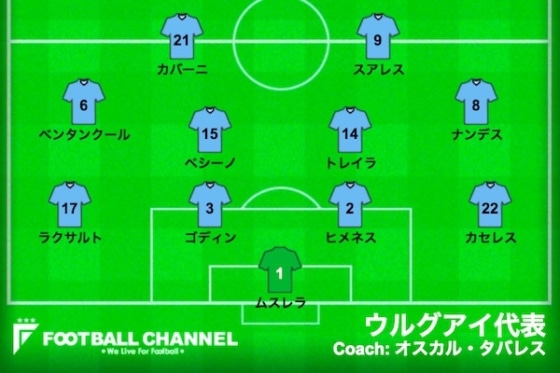 ウルグアイ代表、ポルトガル戦スターティングメンバー
