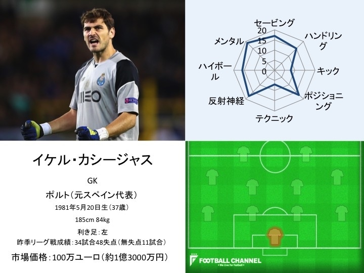 GK:イケル・カシージャス(元スペイン代表/ポルト)