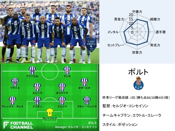 チャンピオンズリーグ常連クラブであり、同舞台での直近5シーズンで3度の決勝トーナメント進出を果たしているのが、ポルトガルの強豪・ポルトである。今季リーグ戦では1試合において平均2ゴールを挙げているなど、武器はその攻撃力だ。その強みをフル活用し、リーグ戦では首位、CLでもグループリーグの首位(2日現在)に立っている。