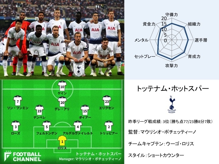 ただ、組織力はプレミアリーグでもトップクラスだろう。事実、今夏に補強を行わず、昨季とほぼ同じメンバーで今季に臨んでいる。ハリー・ウィンクスやデレ・アリなど、近年は若手の台頭も著しく、組織力+若手=トッテナムが成り立っていると言える。これで欧州の舞台でも結果を残せるようになれば、期待度もグッと上がるのだが…。