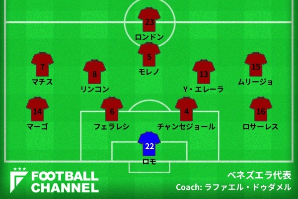 流動的なのはセンターバックの1人、リンコンの相方、セカンドトップの3つのポジション。チャンセジョールの相方は、ジョルダン・オソリオになることも考えられるが、同選手は14日の練習開始前にドゥダメル監督に1人だけ呼び出されて何かを確認していた。ピッチ上で呼び寄せてまで個人的な会話の中で戦術的な話をするとは考えにくく、コンディション面に懸念があるとすれば19歳のフェラレシがA代表初先発を飾る可能性もある。