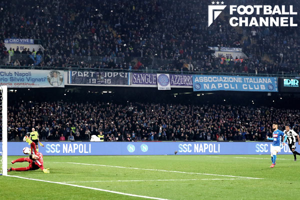 こういう状況でも個のクオリティとフィジカルパワーで強引に流れを戻すのが、ユベントスというチームだ。だがナポリの選手は各々が技術に自信を持っており、チェックをかわしてパスをつないでくる。61分、インシーニェの左クロスをホセ・マリア・カジェホンがサイドから絞って合わせるという得意のパターンで1点を返した。