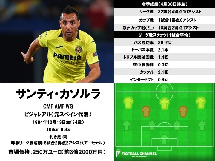 スペイン代表としてEURO2008出場、マラガやアーセナルなどで活躍した経歴を持つMF。相次ぐ怪我に苦しみ現役引退の噂も囁かれたが、今季より古巣のビジャレアルへの復帰を果たしており、チームの主力として継続的にピッチに立ち続けている。今季ここまではリーグ戦33試合に出場し、4得点10アシストの成績を収めており、完全復活を印象付けるようなシーズンを過ごしている。