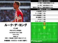 PSVは現在、アヤックスと激しいリーグ優勝争いを繰り広げている最中。そのため、残り試合が少ないとはいえデ・ヨングにはまだまだ活躍が求められることになるだろう。また、同選手は現在、28得点でリーグ得点ランキングトップに立つ。30ゴールの大台到達も、不可能ではない。