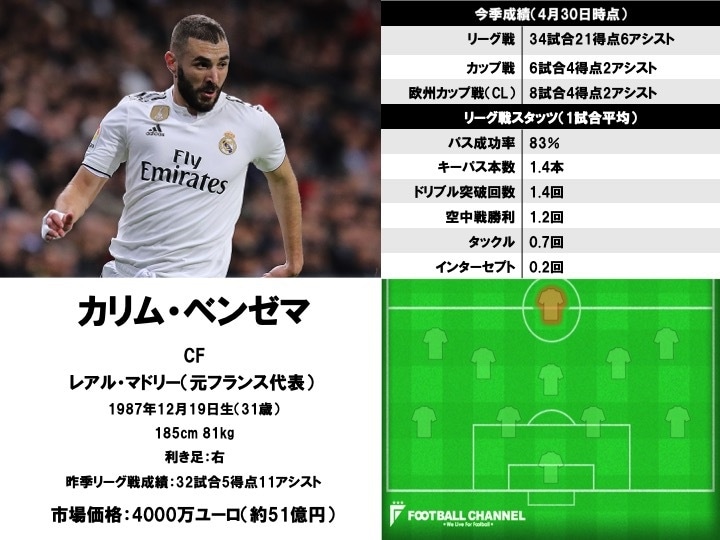 レアル・マドリー在籍10年目を迎えた不動のエース。周りを使う上手さに長けながら、ボックス内では抜群の得点感覚を発揮することができるなどストライカーとしての質は高く、ジネディーヌ・ジダン監督からの信頼もかなり厚い。クリスティアーノ・ロナウドが去ったマドリーにおいては、頼もしい得点源と言えるだろう。