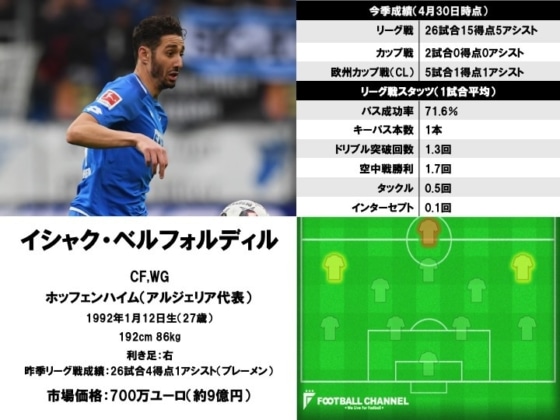 5位:イシャク・ベルフォルディル(アルジェリア代表/ホッフェンハイム)