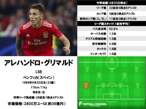 4位:アレハンドロ・グリマルド(スペイン/ベンフィカ)