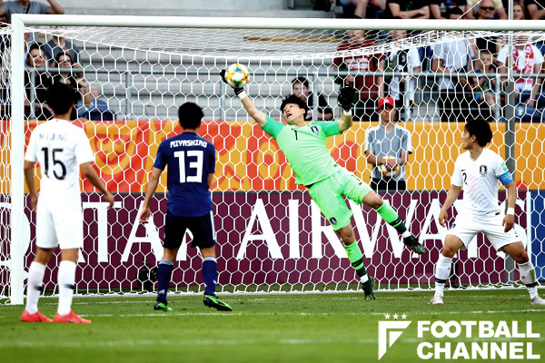 71分。藤本寛也が蹴ったCK。ファーで受けた宮代が、ゴール前で待つFW中村敬斗へボールを送る。途中出場のアタッカーは、ヘディングで韓国のゴールを陥れようとするが、敵のGKに左手一本で防がれてしまう。