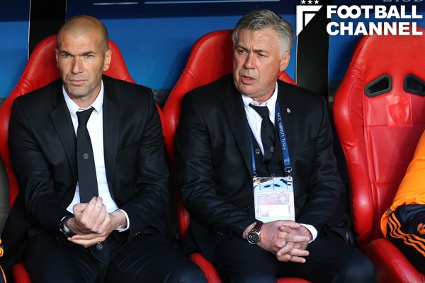 2013/14シーズン、カルロ・アンチェロッティ監督(右)の下で、ジネディーヌ・ジダン(左)はアシスタントコーチを務めた【写真:Getty Images】