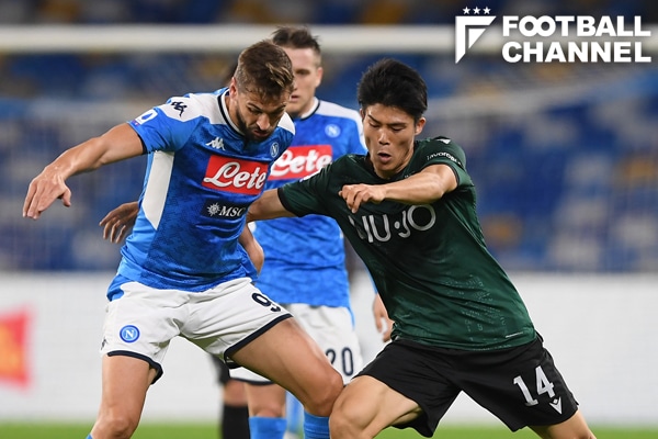 ナポリ戦に先発した冨安健洋は、元スペイン代表FWフェルナンド・ジョレンテとマッチアップした【写真:Getty Images】