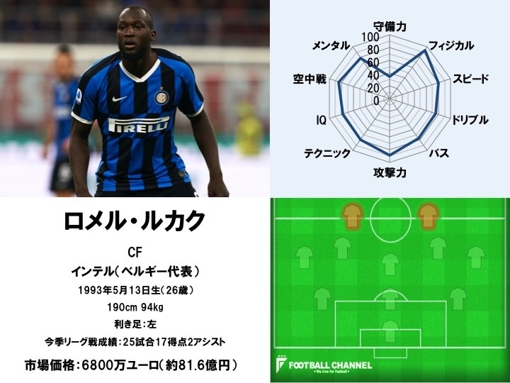 すでにベテランのような風格を漂わせるベルギー代表FWだが、実はまだ26歳。選手として今後も成長を続けていくのは明らかで、インテルでの活躍が継続されるようであれば、同ランキングでさらに上位へ食い込むことも可能となるはずだ。