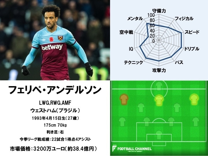FW:フェリペ・アンデルソン(ブラジル/ウェストハム)