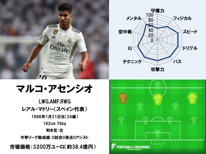 やや好不調の波が激しい点は否めないが、攻撃手として確かなスキルを持つアセンシオ。今季の長期離脱は非常に悔やまれるが、マドリーの次なるエース候補として、戦列復帰後にこの鬱憤をぜひとも晴らしてほしいものだ。