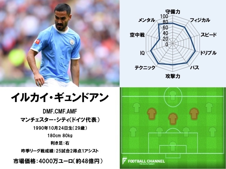 MF:イルカイ・ギュンドアン(ドイツ代表/マンチェスター・シティ)