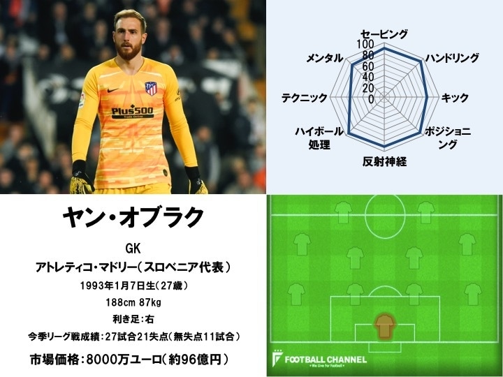 GK:ヤン・オブラク(スロベニア代表/アトレティコ・マドリー)