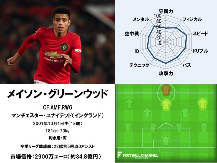 マンチェスター・ユナイテッドの未来を担っていくであろう生え抜きのFW。わずか17歳でトップチームデビューを果たしたその実力に疑いの余地はなく、オーレ・グンナー・スールシャール監督も「現陣容で最高のフィニッシャー」と同選手を高く評価している。チームでは絶対的なレギュラーというわけではないが、短い出場時間でも決定的な仕事果たせる貴重な存在として、確かな信頼を寄せられている。