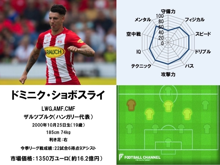 アーリング・ブラウト・ハーランドや南野拓実をビッグクラブへ放出したザルツブルクだが、この男も近い将来その二人に続くかもしれない。それが、ドミニク・ショボスライだ。19歳のハンガリー人は、今季リーグ戦22試合の出場で6得点9アシストの成績を収めるなど、オーストリアの地で印象的なパフォーマンスを披露。チャンピオンズリーグ(CL)でも大きく躍動するなど、多くのクラブから注目を集める存在となった。