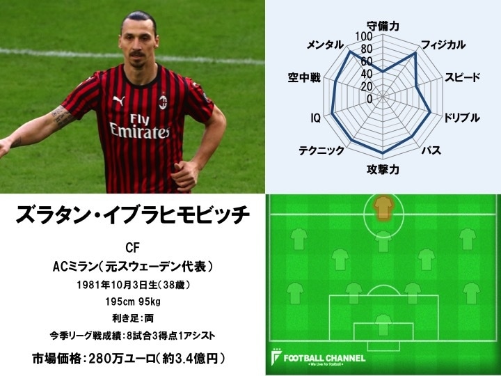 スウェーデンが生んだ世界最高のストライカー。母国のマルメでプロデビュー後、アヤックスやバルセロナ、マンチェスター・ユナイテッドなど数々のビッグクラブで頂点に立ってきた存在である。そんなスウェーデンの「王様」は今冬よりミランへ復帰。近年低迷が続くクラブにおいてさっそくレギュラーの座を掴んだ男は、最前線で絶大なる存在感を発揮しており、ここまでリーグ戦8試合で3得点1アシストを記録と奮闘している。