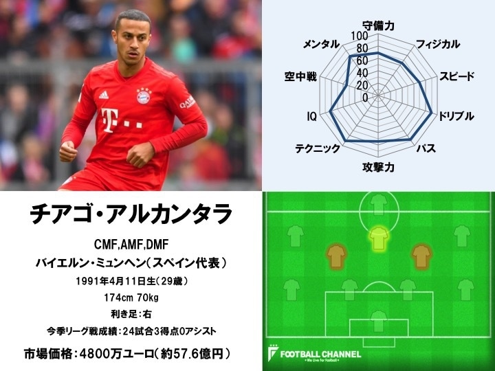 MF:チアゴ・アルカンタラ(スペイン代表/バイエルン・ミュンヘン)