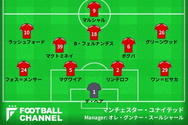 1-0のまま前半を終わらせることができたユナイテッドだが、後半も単調な攻めが続いていた印象は否めず。55分には中盤でボールをカットされると速攻を喰らい、最後はアイェウにゴールネットも揺らされた。VAR(ビデオ・アシスタント・レフェリー)の結果、アイェウの位置がオフサイド判定となったために失点は免れたが、ボール奪ってからの手数をかけない相手の攻めに手を焼いていたのは確かだろう。